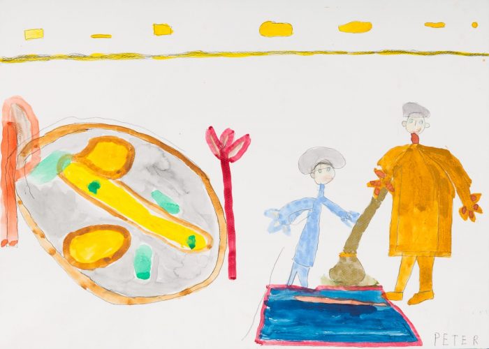 Peter Kraiser, Kartoffeln mit Erbsen, 2025, Wasserfarbe (auch als Postkarte erhältlich)